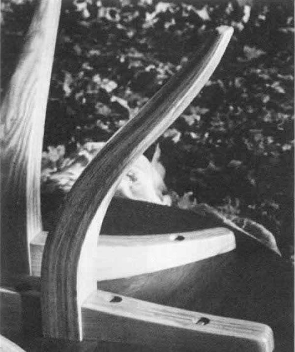 Thin layers of wood are easy to bend. Several thin layers, all with the grain running in the same direction, can be bent on a form and glued together. The resulting curved laminate is much stronger than a piece sawn from solid stock would be, and much less wasteful of material. It is also stronger than a steam-bent piece, because the glue adds to the strength of the wood. Lamination has the additional advantage of stretching rare or highly figured boards, since the best stock can be resawn and used to face all the legs of a chair or table. I discussed the basics of simple bent lamination, the necessary forms and the gluing techniques in the Spring ’77 issue of Fine Woodworking (pp. 35-38). This article will cover layers of wood that are not of uniform thickness—tapered laminations and double tapered laminations. These techniques permit you to make a curved piece whose width and thickness vary, whereas a simple bent lamination can vary only in width. If the design requires cutting through the thickness of a layer of wood at any point along a curve, the whole part is weakened. The severed layers no longer contribute to the strength of the assembly. The problem is avoided by tapering the layers of wood, so the variation in thickness is built right into the lamination. It is important to make each layer of wood as thick as possible although still thin enough to follow the desired curve. It is much better to resaw stock to optimum thickness than to use many layers of thin veneer.