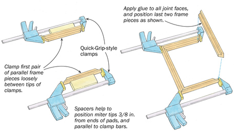 Workshop tip: Quick-Grip-style clamps assemble miters quickly and accurately -