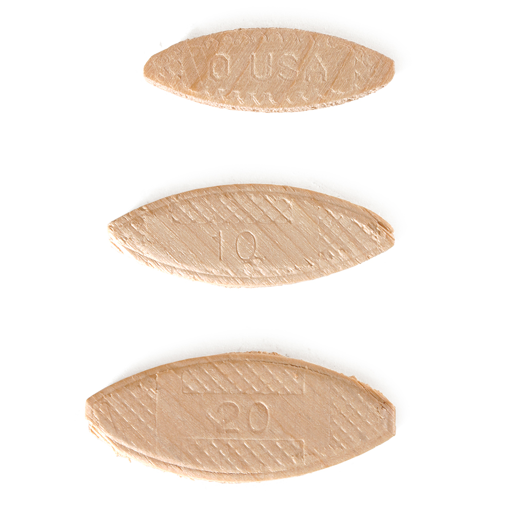 Biscuits come in three standard sizes, No. 0, No. 10, and No. 20. The biscuit joiner has preset depth stops that match these sizes.