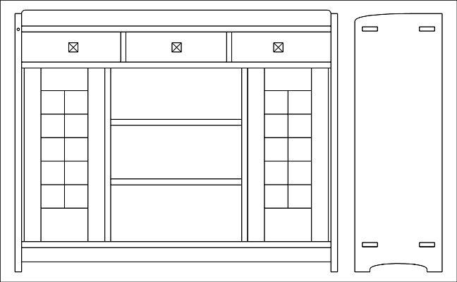 Last weekend I raided my kid’s crafts cupboard and made a quick full-sized mock up. As my wife walked by I had the rare presence of mind to ask “What do you think?” She wanted to know what was going to be stored in the drawers, whether the shelves were deep enough for our dining plates. She had some good insights on the proportions and wanted to make sure the piece would fit in other locations in the room should we redecorate. A point I hadn’t considered.