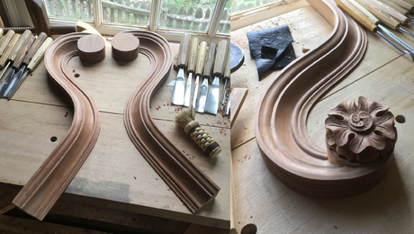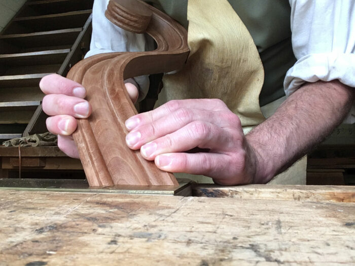 This Moxon variation is not perfect for everything. Long boards would obviously be hard to handle this way, though I have used the two-handed technique as Moxon describes it on 8-ft.-long architectural moldings a few times. Really small pieces also become a challenge. People understandably get nervous at the idea of getting their fingers too close to the exposed blade of the upside-down plane. For small things like the mitered returns pictured below, I swap my plane for a long mill bastard file and make quick work of getting things fitted.