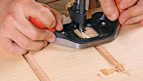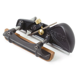 The small router plane is a gem. Its standard iron is 1⁄4 in. wide, but narrower widths are available. Unlike most other router planes, its irons are straight rather than L-shaped, which not only makes them more straightforward to sharpen, but also allows them to fit into tighter spaces. The iron beds into the body precisely, preventing any sideways movement, and its depth of cut is easy to adjust.
