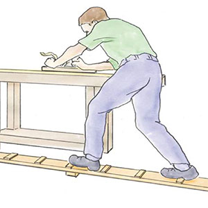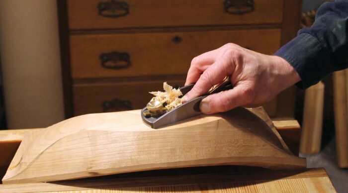 The block plane is equally good. It has a very solid feeling, and the high-speed-steel iron required only a light honing, which produced a fine edge that held up well. I worked with the plane on many types of wood, and it handled them all with ease. The three adjustments—mouth, lateral, and depth—are precise and intuitive. Taking advantage of the bevel-up design, I swapped out the 25° iron for a 50° iron (also available from MTC) to tackle some tough, figured woods. Combined with a tight mouth, it left the surface smooth and clean with no tearout.