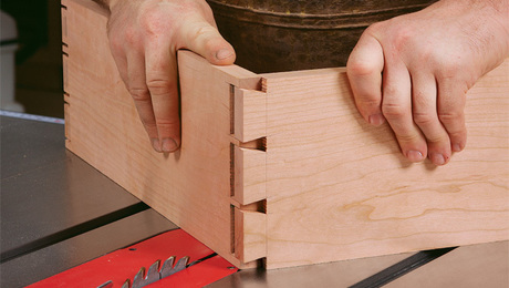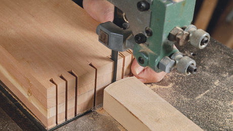 To use the jig, start by scribing the baseline of your dovetails. Then move the bandsaw fence to line up the blade with the first cut. Be sure to make all corresponding cuts on both ends of every tail board before moving the bandsaw fence.