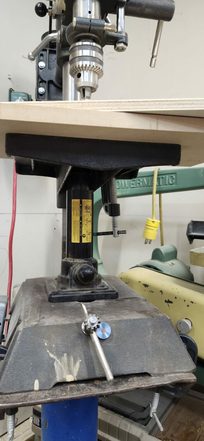 Vintage benchtop drill presses are a wonderful thing, until you have to move the table. In this video, Ben Strano has a simple fix for his that added some always-welcome storage.In the last episode of Shop Talk Live, I stated that my drill press would probably be the last power tool I’d get rid of if I ever were forced to do something that dramatic. I have always had drill presses with only 2 in. of quill travel, so drilling holes deeper than 2 in. required multiple steps. More steps equals more chances to introduce inaccuracies. I think 2 in. of quill travel would be fine for most woodworkers, but it became a point of friction often enough for me to be consistently annoyed by my old drill press.
